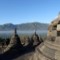 Aangezien wij de tempel bij zonsopkomst wilden zien werden wij al om half vier door onze chauffeur opgehaald bij het hotel. Een uurtje later stonden wij in de lobby van een ander hotel, wat entree tot de tempel aanbiedt buiten de openingsuren om. Het terrein opent namelijk pas om zes uur haar poorten en dan staat de zon al hoog aan de hemel. Nadat ons een verplichte Sarong om was gebonden en we een zaklamp hadden gekregen begon de tocht de trappen op richting de bovenste drie etages van het complex. Nadat we zelf een mooi plekje hadden gezocht begon het wachten op de zon. En toen die er eenmaal was... genieten! De vallei lag in een dikke laag mist terwijl wij daar middenin op een eiland van stenen stoepa's met Boeddha's stonden. Vulkanen aan de horizon torenden boven de mistflarden uit, dit was het uitzicht dat we hadden gemist bij de Bromo maar dan wel uitzicht type XXL!